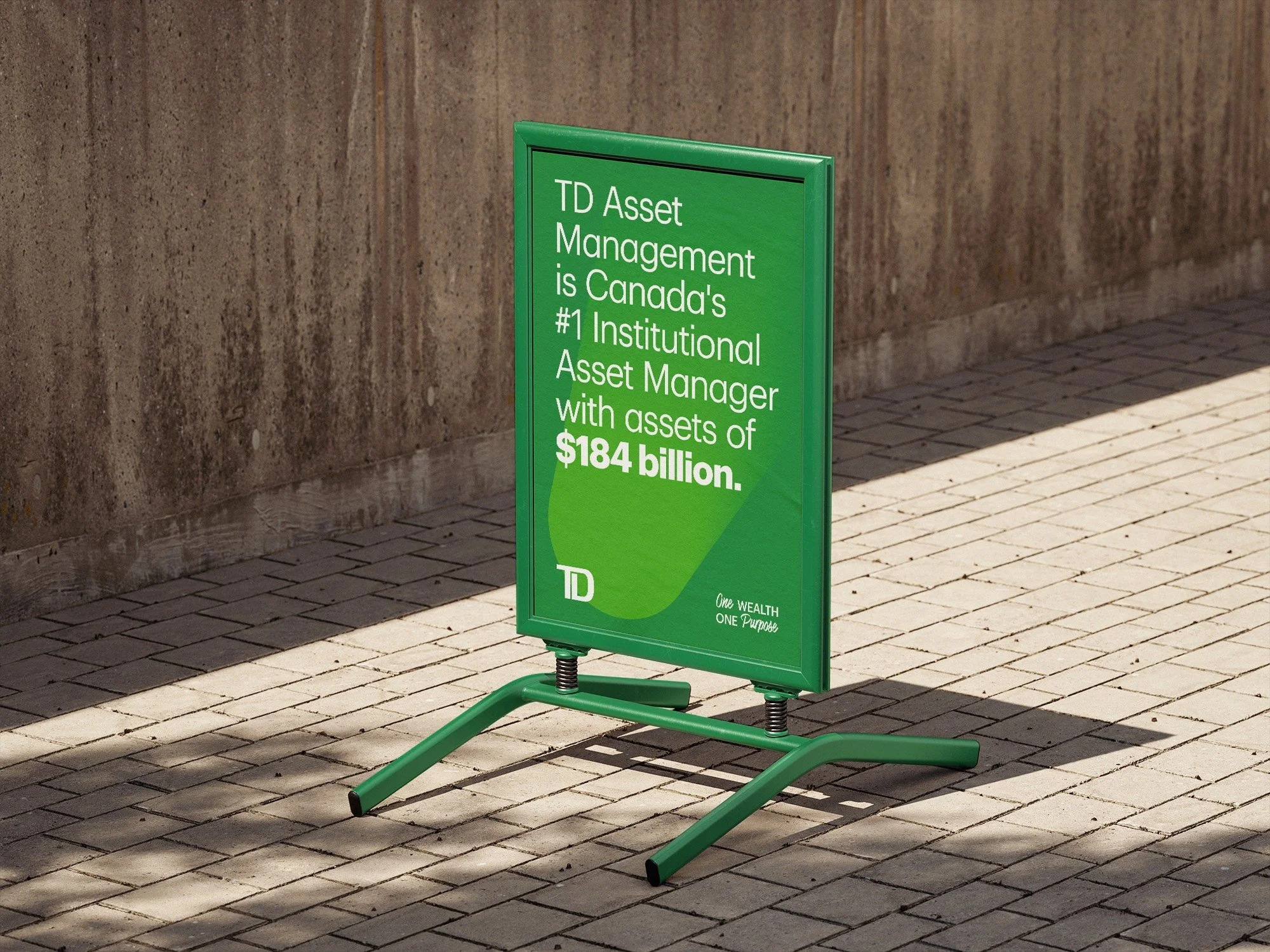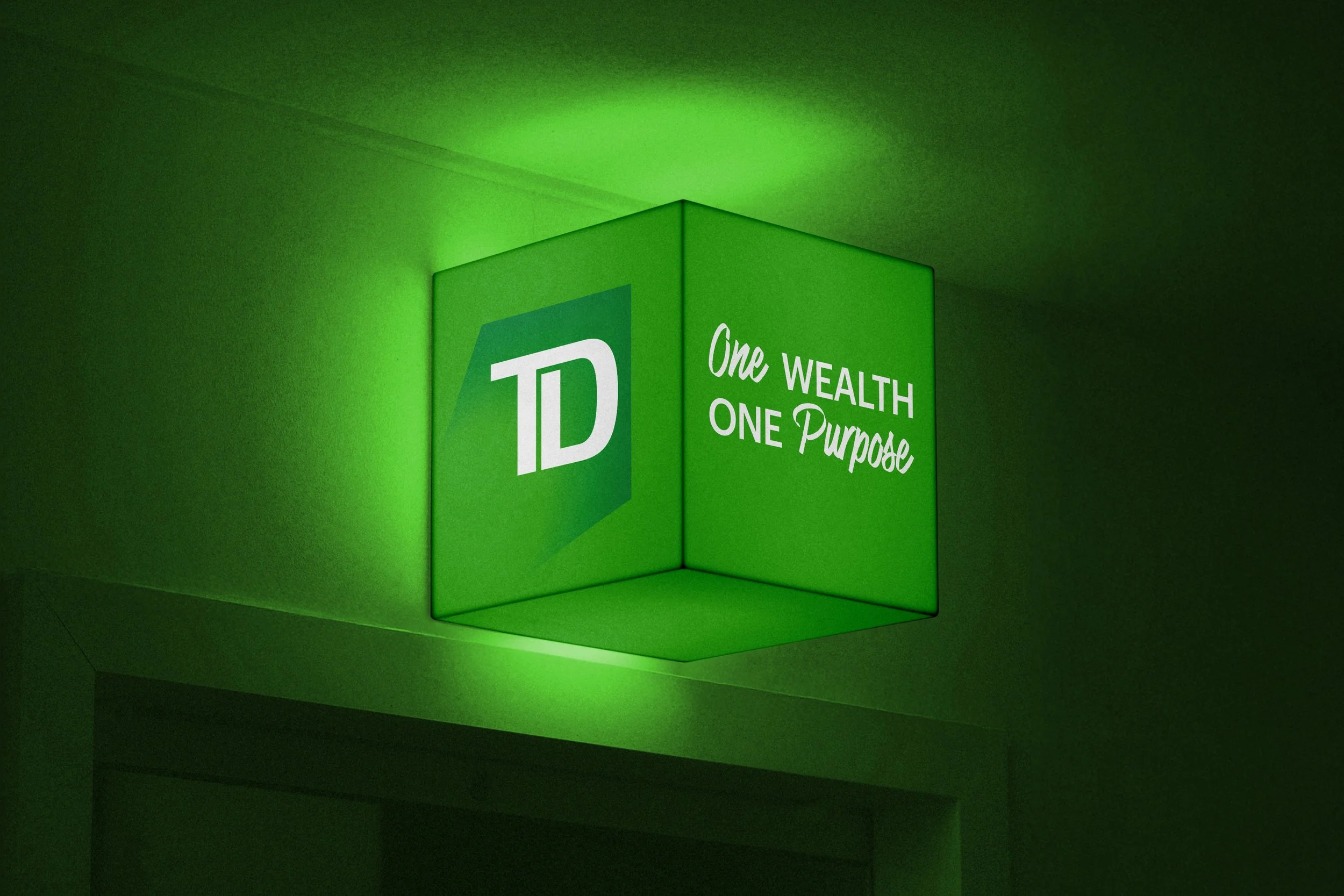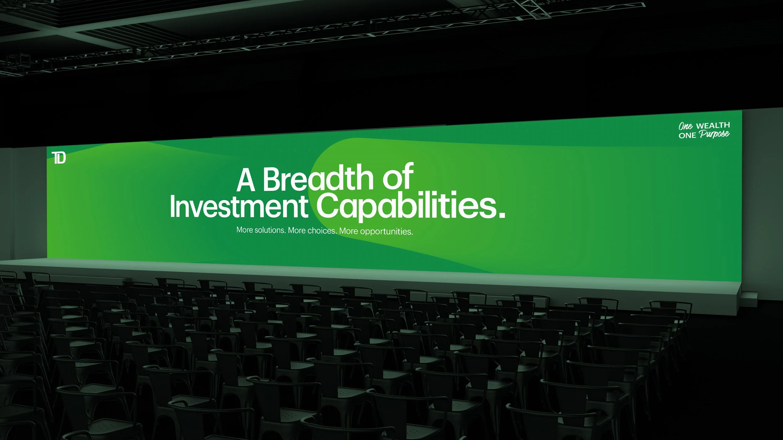 Bringing TD’s vision for the next generation of leadership to life, we created a bold, unified visual identity for One Wealth, One Purpose. The branding blends gradients from TD’s old and new colour playbooks, creating a sense of momentum and an inspiring environment across OOH, event signage, digital screens, and stage visuals – all designed to embody alignment, purpose, and forward growth.